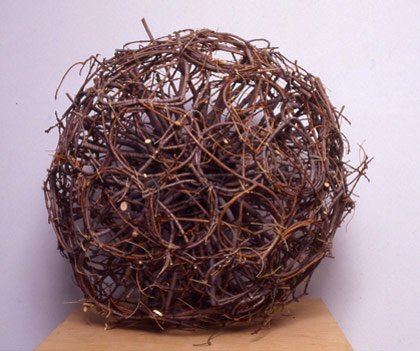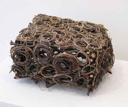 , 2012, Peeled holly tied with waxed linen and crocheted strands of linen, 14" x 11" x 11"